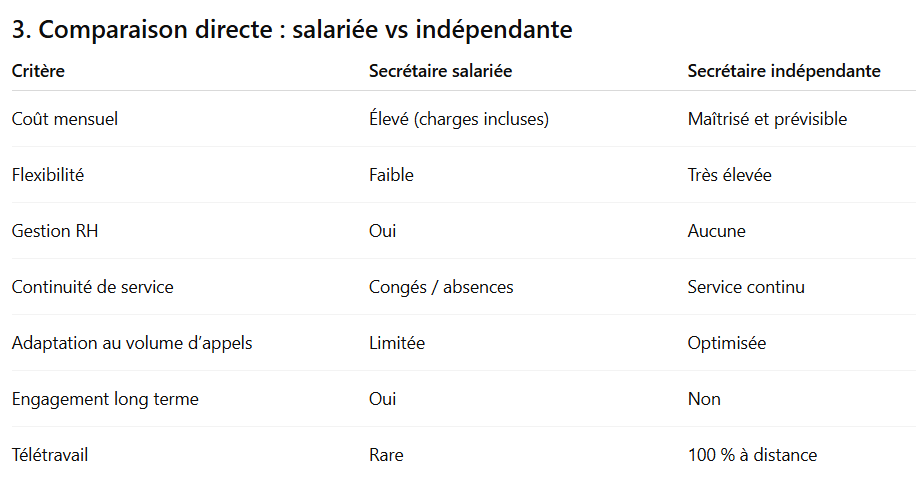 👉 Un forfait de télésecrétariat coûte généralement entre 300 € et 500 € par mois, pour un service équivalent en termes d’accueil téléphonique et de gestion d’agenda.
